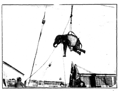 At one stage of the journey his roars frightened the horse drawing the cart, and to add to his discomfort of the human occupants, a bolt occurred. Captain McDonald, the commander of the Gracchus, brought the new arrival from Calcutta, and entrusted him to the care of Mr. Le Souef for a few months, in order that he may be acclimatised. Our illustration shows the elephant being landed from the steamer Gracchus at Fremantle.