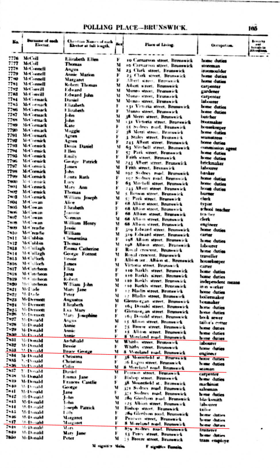 Electoral Roll - Brunswick 1903