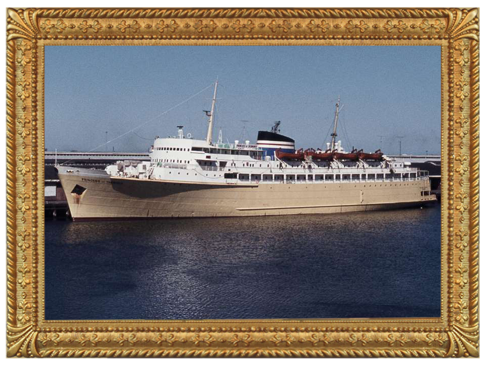 Princess of Tasmania was owned and operated by the Australian National Line. The 230 miles between Melbourne and Devonport, over which the ship sailed three return trips per week was appropriately named the "Searoad". This was along Port Phillip Bay, over Bass Strait and along the Mersey River at Devonport to it's other specially constructed berth. At the time of introduction in 1959, it was reportedly the longest drive-on drive-off service in the world. The Princess of Tasmania was 4,619 tons and carried 334 passengers, 178 in cabins and 156 in lounge chair type accomodation. The seating accomodation was in three sections, Two of these were situated -- one on each side of the funnel, while a bigger saloon was situated just behind the front full width deck. It was built at the State Dockyard at Newcastle New South Wales and had a draught of 15 feet which allowed it to use the more direct shallow channel at the southern end of Port Phillip bay to and from the heads, which saved considerable time and distance. It also carried some 100 cars and caravans plus commercial vehicles and a mail van.