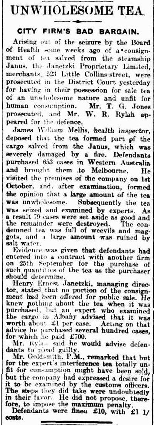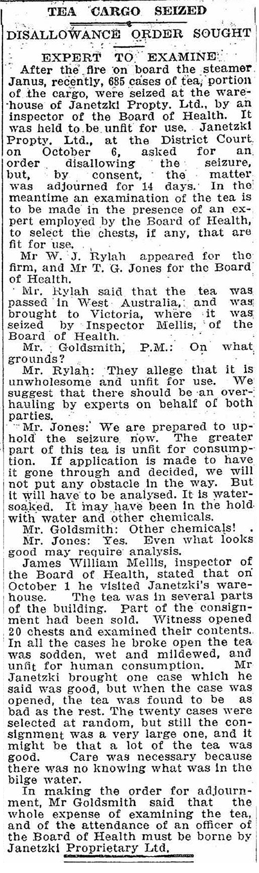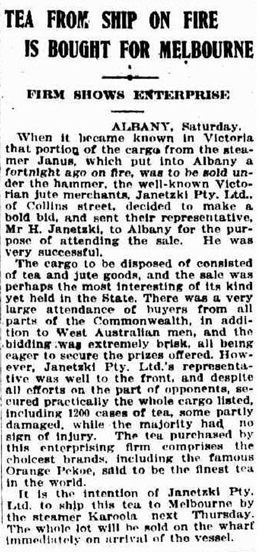 Tea salvaged in Albany from s.s Janus fire 1914 |