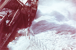 Shipping seas over starboard bulwark in Tasman Cyclone