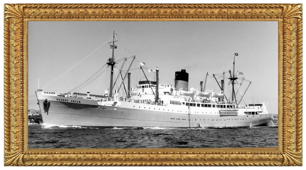 October - Aquired by the Dominion Navigation Co Ltd (HC Sleigh Ltd), Liverpool and renamed GEORGE ANSON. Placed upon the Australia Japan service. Given yellow funnel of H C Sleigh. Both sisterships were later sent to Barclay Curle Shipyards in Glasgow to be partially rebuilt and fully refitted. The superstructure was extended forward and all cabins were extensively remodelled. In addition full air-conditioning was installed for operations in warmer climate, and a pool was installed aft on Promenade Deck. 130 all First Class accommodation. Sistership 'NOVA SCOTIA', renamed Francis Drake |