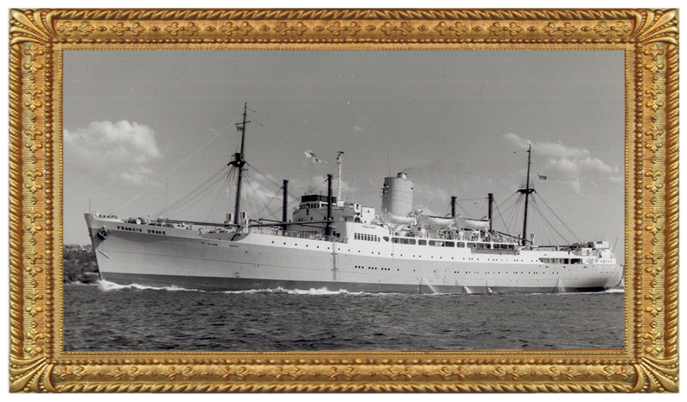Built as the "NOVA SCOTIA" by Vickers Armstrong, Newcastle for Johnston Warren Lines Ltd (Furness, Withy & Co Ltd), Liverpool in 1947. Aquired by the Dominion Navigation Co Ltd (HC Sleigh Ltd), Liverpool and renamed FRANCIS DRAKE. Placed upon the Australia Japan service. Given yellow funnel of H C Sleigh. Both sisterships were later sent to Barclay Curle Shipyards in Glasgow to be partially rebuilt and fully refitted. The superstructure was extended forward and all cabins were extensively remodelled. In addition full air-conditioning was installed for operations in a warmer climate, and a pool was installed aft on Promenade Deck. 130 all First Class accommodation. Sistership 'Newfoundland', renamed George Anson. 1965 under ownership of Dominion Far East Line, a joint venture between H C Sleigh and Jardine Matheson, and given the red and black Indo-China funnel synominous to Jardine. In that service they operated with Indo-China's "Eastern Queen". 16/03/1971: Arrived at Kaohsiung for breaking up