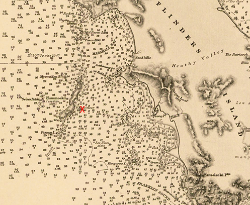 Aproximate position of wreck of Robin Hood behind Hummock Island