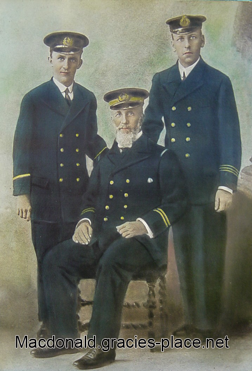 Colin was the fifth child of Mr & Mrs Hector McDonald. He was born in Applecross, Scotland on May the 15th, the year however is a matter of conjecture. I have several items that give the year as 1851, this ties in nicely with the age given on several passenger lists and in many newspaper articles. However I also have 2 official documents, the index for his Masters certificate and the index for his WWI medals that state 1854. To confuse things even further I have a list of discharges from 1922-24 that gives a date of 1858! While the 1858 date can easily be proved to be incorrect, it does place some doubt on "official documents".