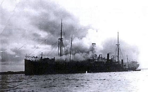 On the 28th of August 1914 Janus took fire in the Indian ocean, the blaze could not be controlled so Colin made for Albany.